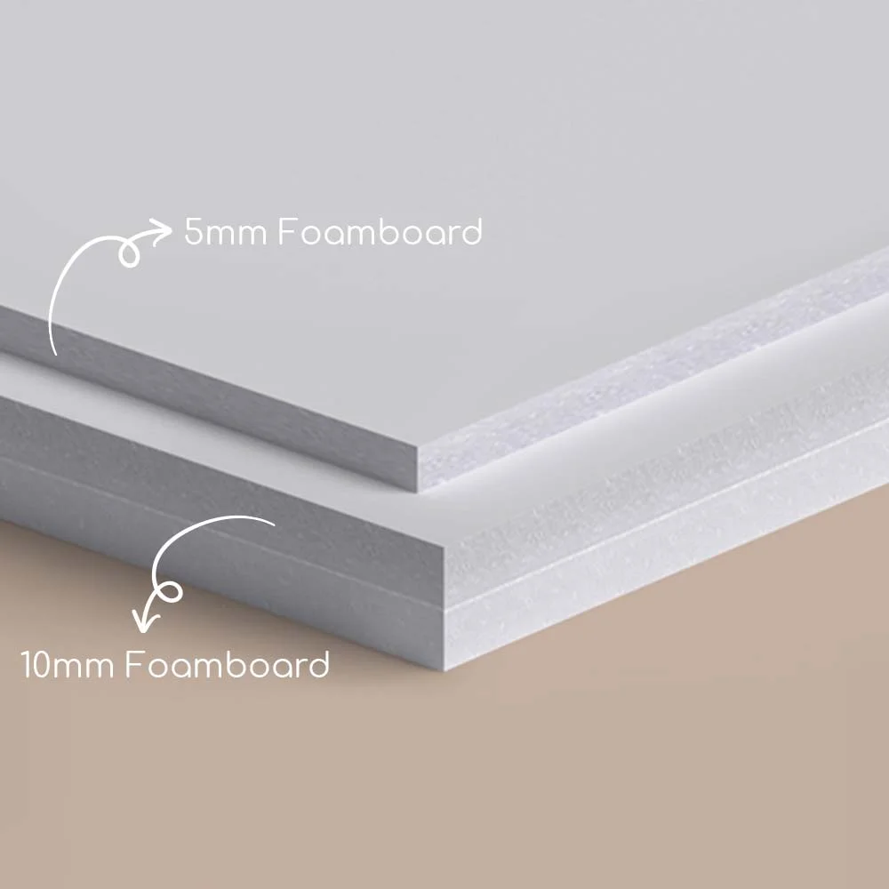 Foamboard prints are perfect for businesses and individuals needing high-quality visuals in a lightweight format. Using high-resolution digital printing, we produce sharp, vibrant images on smooth foam-core boards that are ideal for indoor use. Available in thicknesses like 5mm or 10mm, these boards consist of a dense foam center with paper or plastic-coated surfaces for durability and clarity.