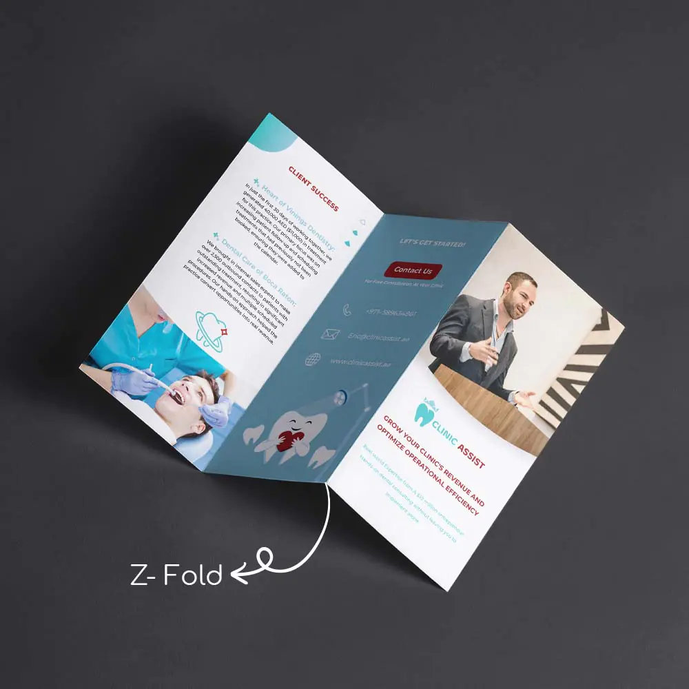 We offer a wide range of fold styles including bi-fold, tri-fold, z-fold, and gate fold to match your design needs. Available in A3, A4 & A5 sizes our brochures are printed on high-quality 135–150gsm coated or recycled stock.