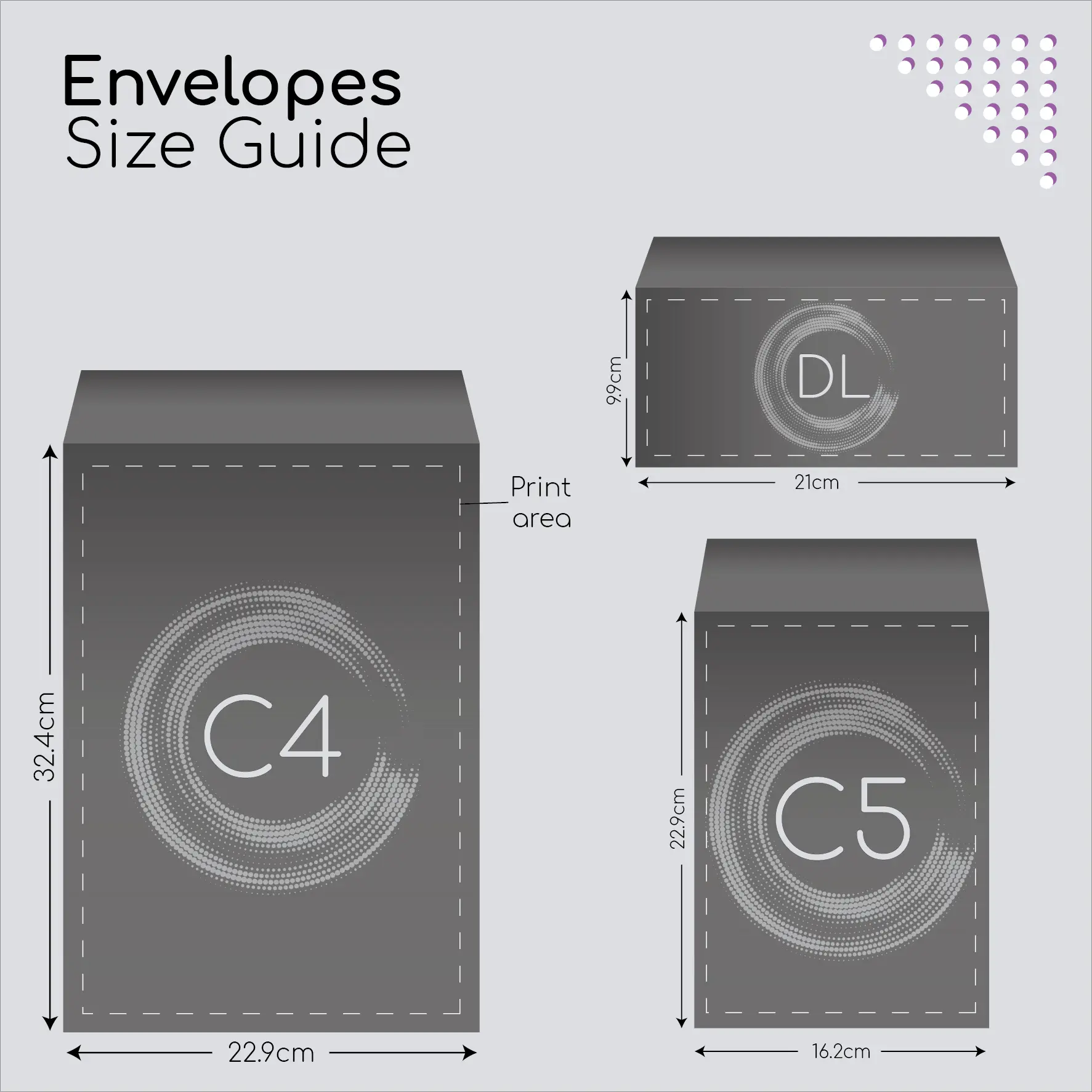 Available in DL, C5 and C4 our envelopes can be printed in full color with your company logo, tagline, or return address. The envelopes comes readymade on a 100 GSM Woodfree paper.