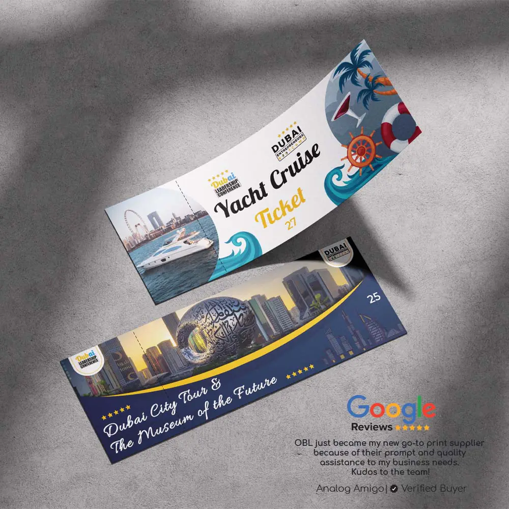 Get fast production and reliable delivery across Dubai and the UAE. Optional design support is available to make your tickets as eye-catching as your event.